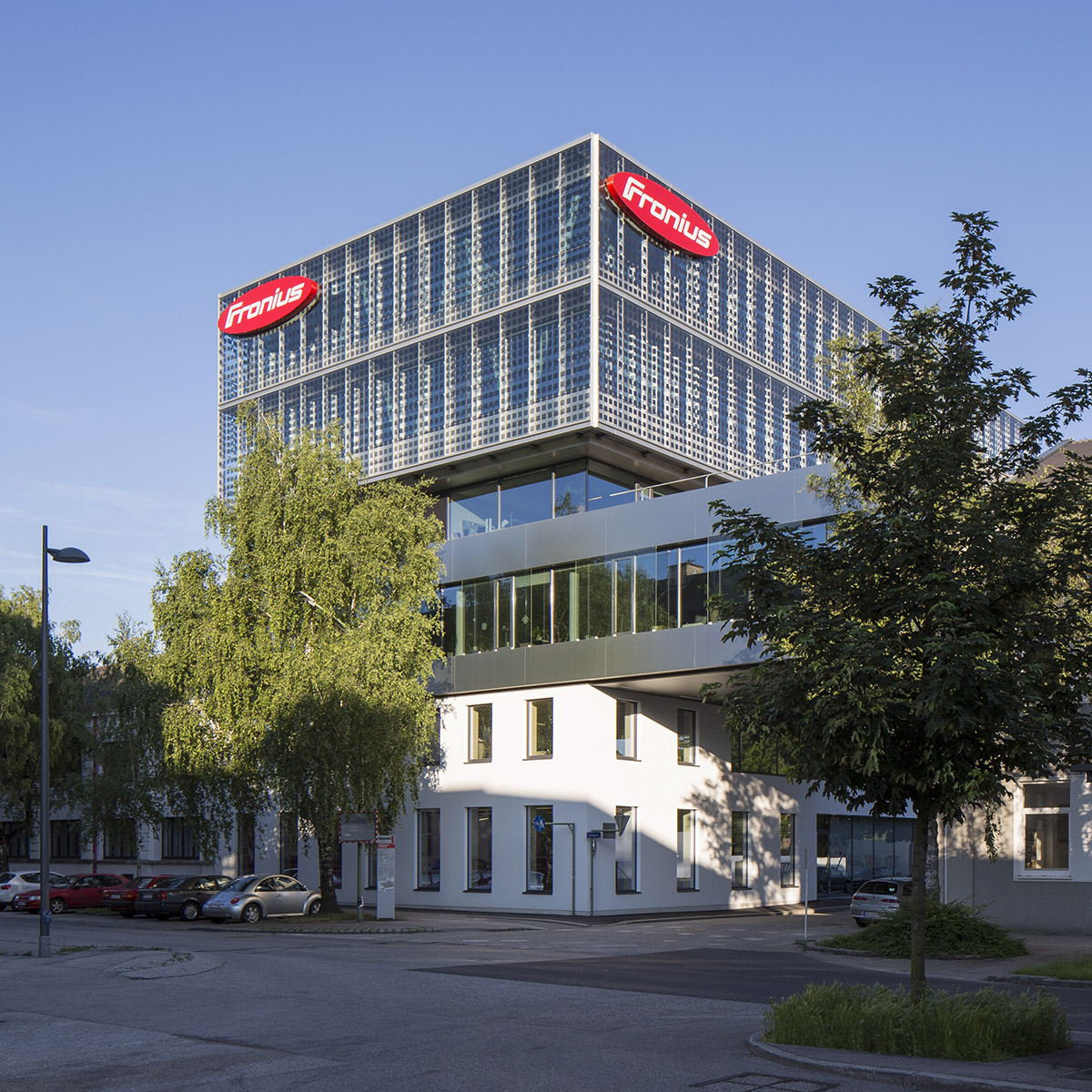 The 42 kWp photovoltaic facade spans 700 square meters with work environments behind it and is one of the largest of its kind. As an integrative part of an intelligent building concept, it presents a timeless landmark visible from afar, in direct vicinity to the Wels train station. The active-energy building generates more energy than it consumes, thanks in part to state-of-the-art environmental technology, complementing the revitalization and spatial renewal of a former inner-city industrial quarter.