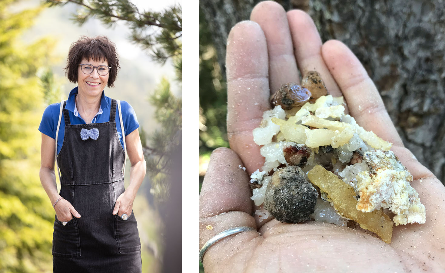 We have to warn you: once you have started, you soon will not be able to go past a rosehip hedge, an elderberry bush or a hawthorn without picking at least a handful of fruit or a few leaves. Walks can sometimes drag on… but when you get off the cable car in Ried-Mörel on a late September morning and see the sun, you will wish that this day would last forever. The air carries that faint breath of early autumn, but otherwise, here in Valais, the late summer is still in full swing on the southern slopes as you look down into the valley of the young Rhone. Isabella Albrecht makes an appearance along with a basket and walking stick and one wonders what the cheerful and youthful-looking biologist might want to do with the latter. She laughs and explains: “If a branch that I want to pick something from is out of reach, I’ll bring it closer with the stick.”