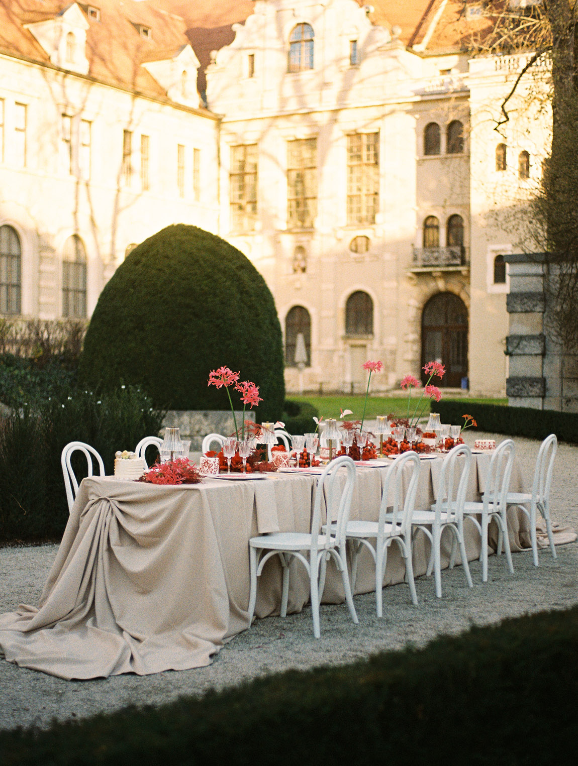 Sustainable weddings featuring local flowers and eco-friendly materials are a growing trend, she notes. Destination weddings, particularly in Bavaria, are also booming. “I’m planning more multi-day celebrations than ever, starting with a get-together and ending with a brunch,” she adds. “For many couples, time with loved ones is a precious luxury, and they want to enjoy it stress-free on their wedding day.” That’s exactly what Julia Heimann makes possible with Hochzeitsgefühl.