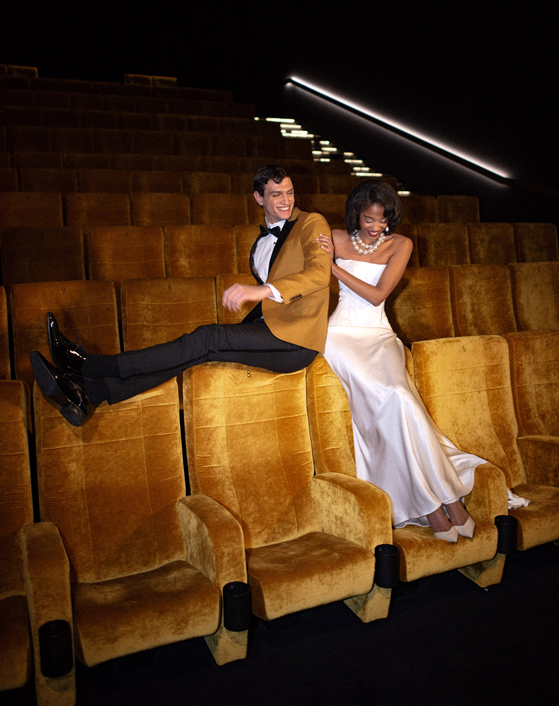 When it comes to wedding suits, it’s about capturing the essence of a couple’s love. “It’s not just fabrics, cuts and colours – it’s the heart of your relationship woven into each design,” she explains. “Take Marc and Melanie, for example: Marc proposed in an old cinema. That special detail inspired me to create a suit reflecting their story. The mustard-hued fabric, echoing the cinema seating, was the focal point of the design. Such personal narratives make your wedding unique – and I bring them to life in every stitch, seam and colour choice. My aim is to design suits that mirror who you are: your past, your present, and the future you’re about to embrace together.”