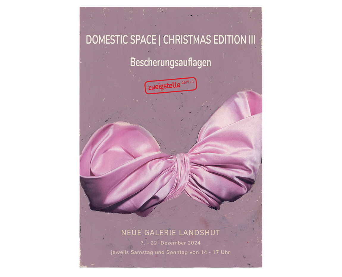 Vom 7. bis 22. Dezember 2024 präsentiert Zweigstelle Berlin ihre Weihnachtsausgabe Domestic Space | Christmas Edition III in der Neuen Galerie Landshut. Die Ausstellung zeigt Druckgrafiken, Editionen und Multiples von 35 Künstlerinnen und Künstlern aus Deutschland, darunter Werke von Claudia Desgranges, Isabelle Dyckerhoff, Christian Frosch, Inge Gutbrod, Karen Irmer, Elvira Lantenhammer, Florian Lechner, Jürgen Paas, Kirk Sora, Angela Stauber, Maria Wallenstål-Schoenberg, Thomas Wunsch, sowie Jaee Tee aus Kuala Lumpur, Malaysia.
