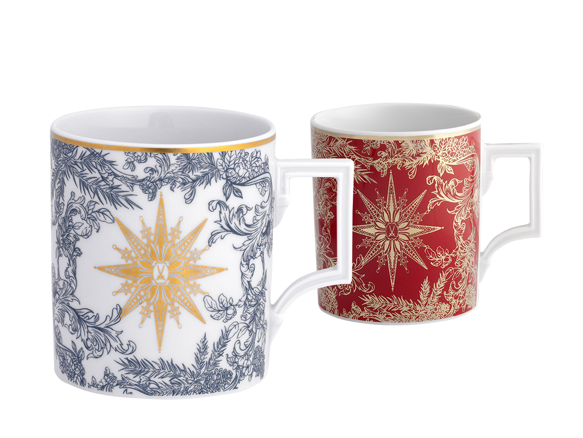 MEISSEN Mug ‚Stern Blau‘, Porzellan, V 0,25. MEISSEN Mug ‚Stern Rot‘, Porzellan, V 0,25. Fotos: MEISSEN