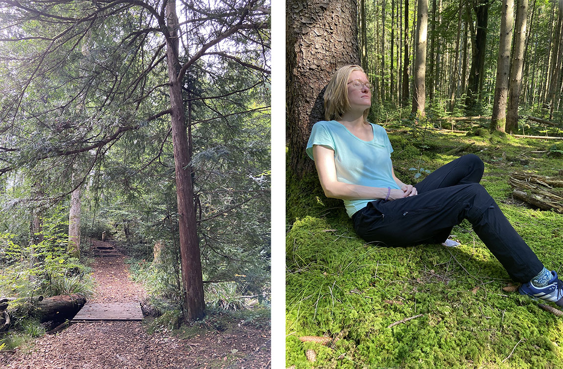 Achtsamkeit als Selbstfürsorge – die in der Nähe des Starnberger Sees als Naturcoachin praktizierende Hochschuldozentin Nathe kennt das Konzept aus eigener Erfahrung. Und schwört in ihren Sitzungen auf die heilenden Kräfte des Waldes. „Der Duft des Waldes fördert die Ausschüttung von Serotonin, einem Hormon, das einen positiven Einfluss auf unsere Stimmungslage hat. Beim ‚Waldbaden’, also der Kombination aus Wald und Achtsamkeitstraining, lernen meine Kund:innen, auch in den herausfordernsten Momenten einen kühlen Kopf zu bewahren und bei sich zu bleiben.”