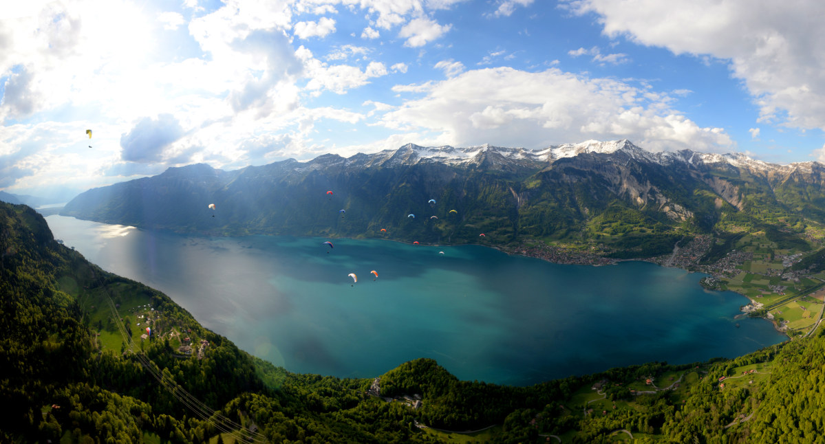Lake Brienz with paragliders. Photo: © Interlaken Tourism