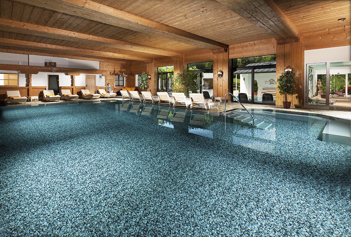Eine entscheidende Rolle spielt dabei der Spa-Bereich des Wellnesshotels, in dem das speziell aufbereitete Granderwasser® verwendet wird. Mit der Wohlfühl-Sauna-Alm steht den Gästen hier eine abwechslungsreiche Saunawelt im bayerisch-rustikalen Alpenstil (aber mit moderner Saunatechnik!) zur Verfügung. In der Wasserwelt lassen sich die Gäste im ganzjährig beheizten Innen- oder Außenpool treiben und erholen sich so von einem langen Tag in der Bergwelt.