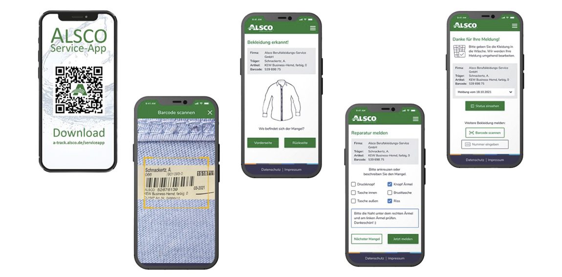 Für den unkomplizierten Leasingservice hat ALSCO ein Kundenportal entwickelt, über das nicht nur schnell und bequem Informationen zum Bekleidungsstand der Mitarbeitenden abgefragt werden, sondern auch unkompliziert Bestandsveränderungen vorgenommen werden können. Über die ALSCO Service-App können Mitarbeitende außerdem melden, wenn ein Teil beispielsweise repariert oder ersetzt werden muss. Das Kleidungsstück wird automatisch beim nächsten Waschgang repariert oder ersetzt. Einfacher geht Berufsbekleidung kaum.