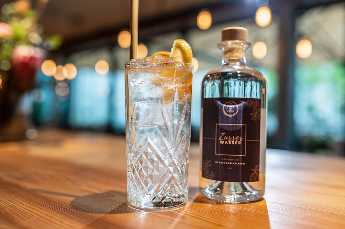 Der hauseigene Gin Zusser Wasser. Foto: Ingo Rack