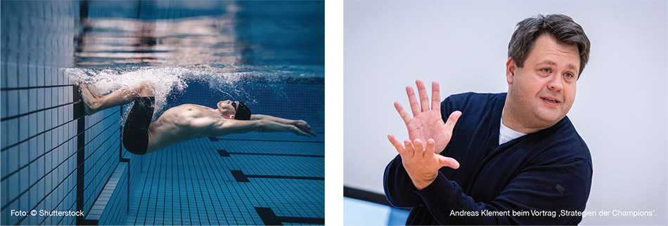 Links: Foto: © Shutterstock | Rechts: Andreas Klement beim Vortrag ‚Strategien der Champions‘.