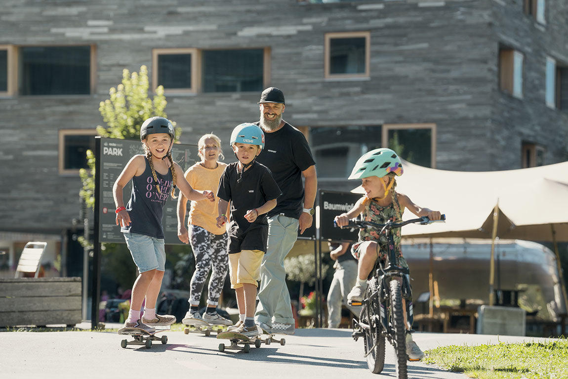 “From the Urban Surfwave and the Snakerun to the Mini Ramp where kids can surf the asphalt waves with skateboards, scooters or BMX bikes, guests will find a myriad of leisure activities at rocksresortPARK. A playground, a large play area, a trampoline and equipment such as badminton rackets, ping pong and slack lines, round off the line-up of options and ensure endless fun,” enthuses Wüthrich.