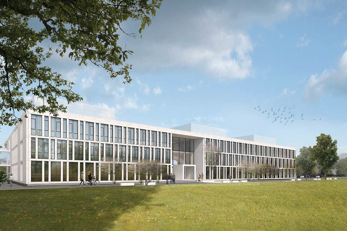 For the University Hospital Düsseldorf, BDA RDS Partner is currently realising the new building and medical research centre Medizinisches Forschungszentrum I. Its east-west alignment will be opened by a northern and southern transport link. The northern axis is intended for general staff traffic and can be accessed without controls. The southern axis is exclusively open to lab staff. Both transport links with their adjoining floor space will be connected by three building parts. Every lab hallway and room will be constructed to be compatible with S2 standards. In addition, each of the three building sections will have a central changing room that can serve to form linked S2 areas. Apart from urban development configuration, the building’s layout concept is guided by the requirement for the highest possible flexibility to allow for the building’s future development. On this basis, 14 institutes are spread across the floors according to their space requirements and functions. The individual institutes will not exist in physical silos, but overlap with other institutes is possible to enable more flexibility for later changes. Alongside each institute space, jointly used core facilities exist as lab space. The building’s basic grid and connected flexibility is also the principle for the standardised design of the lab and office façades. The requested light colours are implemented through a ventilated façade made of elements of white exposed concrete. The punched windows that are created by the structure of the façade will have a self-supporting frame construction and structural glazing finish. The façade notches on the north and south side will be glazed with an all-over self-supporting frame façade. The north entrance will be further accentuated with an entrance cube.