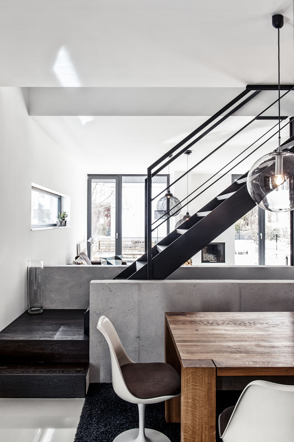 Stilistisch folgt Klose dabei ein wenig den Bauhaus-Traditionen: optimale Funktionalität mit klaren, kubischen Baukörpern, die perfekt auf die Umgebung des Objektes zugeschnitten sind. Das Einfamilienhaus mit Blick auf den Starnberger See ist ein ideales Beispiel dafür, wie die Architektur eines Gebäudes optimal an die Topographie angepasst werden kann. Das Objekt wurde gemäß KfW 55 gefördert und besitzt ein Heizsystem, dass automatisch den idealen Wärmerzeuger wählt – von Stückholz und Erdgas zu Holzpellets und Solarbetrieb sind keine Grenzen gesetzt.