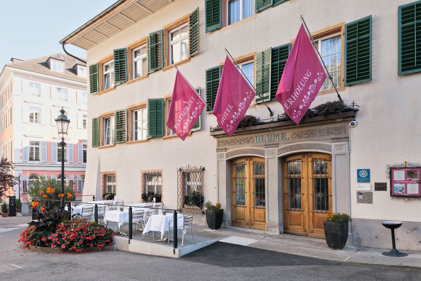 With its exceptional flair and idyllic setting in the Swiss Spa town of Baden, everything about the Atrium Hotel Blume is truly convincing. The historically significant building transports guests back to a time of Roman baths but ensures that all modern needs are met. Hotel Blume is the German word for flower. The name might have its origin in the discovery of the warm healing spring in Baden. First mentioned as early as 1421, Blume was already a spa hotel even then, and it has kept its charm over the centuries.