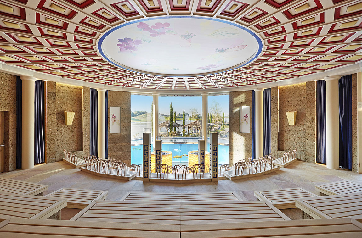 In den Themensaunen gehen Sie auf eine Sinnesreise um die Welt. Vom fernen Osten der Koi-Sauna aus geht es Richtung Orient. Exotisch lädt die Tropen-Sauna zum Abschalten inmitten des Bambushains. Der griechische Sonnengott entführt in seine antike Tempelanlage. Weiter Richtung Westen thront der Palast Spaniens mit der maurisch gestalteten Alhambra. Ein wahres Genussfeuerwerk erwartet die Gäste im Wiener Kaffeehaus im Jugendstil, bevor es rauf auf den Berg zum Holzstadl geht. Eine Kraftquelle, ebenso mächtig wie der Keltenthron, der ganz mystisch die Reise im Norden beendet. Fühlen Sie die Wärme auf Ihrer Haut, lauschen Sie den Klängen, riechen Sie die Düfte. Blicken Sie hinaus in den Vitalgarten und schmecken Sie frisch gepresste Säfte und wohltuende Tees. Von Aqua-Fit am Morgen über Infrarotliegen, die wohltuenden Gesundheitsbecken, die vielen Whirlpools und Sprudelliegen bis hin zu den Aufgüssen und Dufterlebnissen in den thematisierten Saunen. Heiße Saunagänge mit erfrischender Abkühlung kurbeln den Organismus und das Immunsystem richtig an.