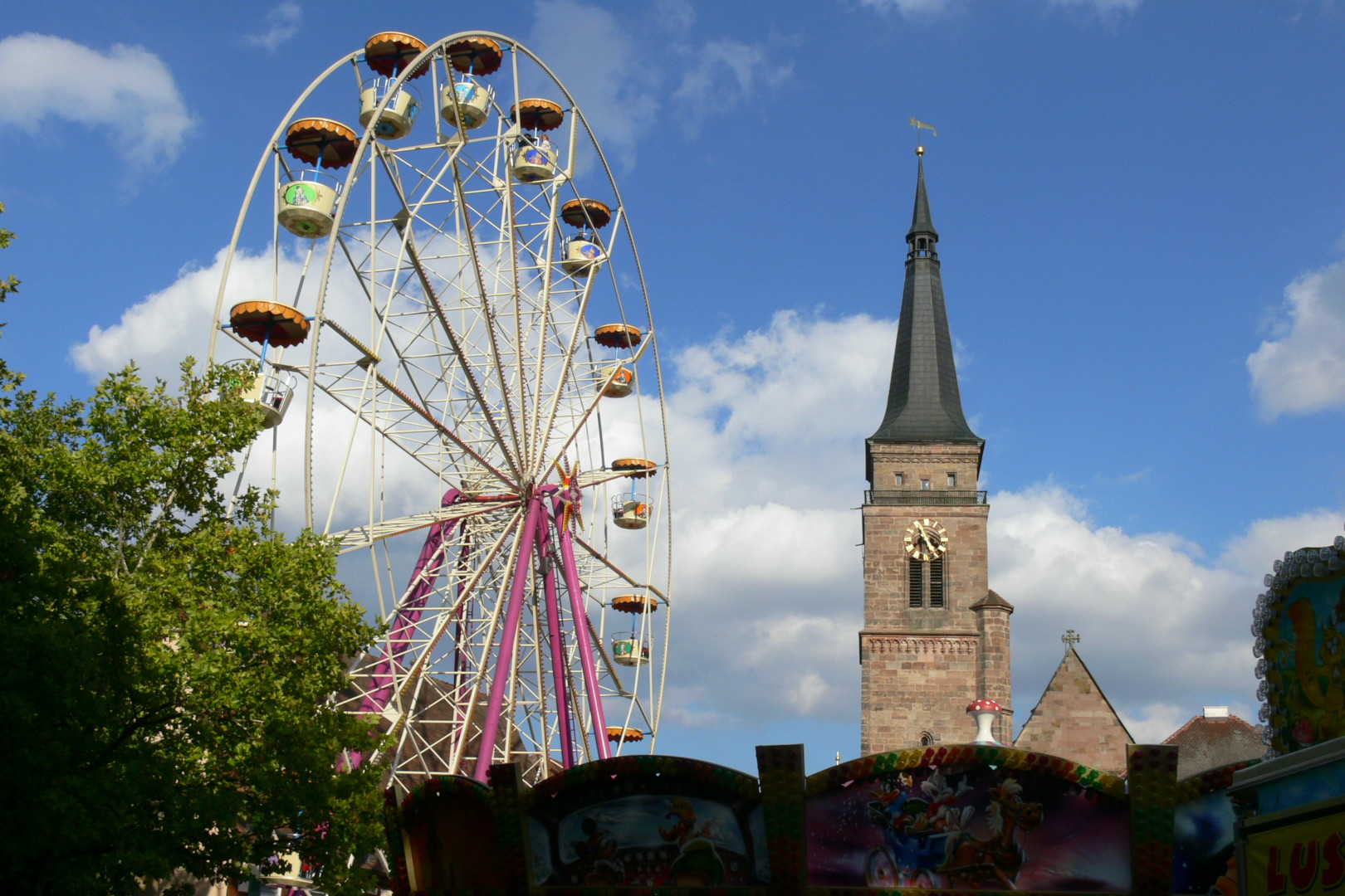 One highlight is the raising of the ‘Kirchweih-tree’, usually a spruce, on Saturday morning. Therefore, the village youth go into the local woods in the very early morning to log the nicest tree – of course with some help of a forester – to bark it and to decorate its crown. Then it is brought into the village and put up on the market place in front of the cheering residents and visitors. The festivities take place in the local inn or in a special tent that is put up for the celebrations. Several bands guarantee a great atmosphere and also play for the traditional dances of the village youth on Sunday. Depending on the size of the town or the village, they might also have a children’s merry-go-round and some fairground stalls for sweets or shooting. The celebration of the ‘Kirchweih’ is always something special during which most of the people who moved away come back to their home town to celebrate with former classmates and neighbours. Every young child looks ahead of the time when it will be their turn to preserve all the customs and traditions.