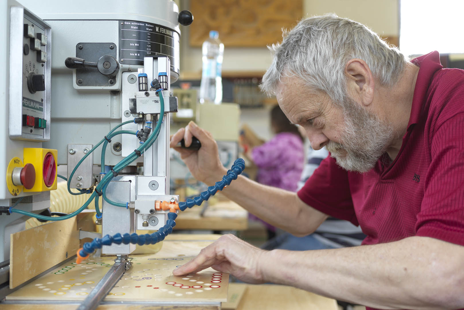 Die Stiftung Brändi vereint innovative Ideen mit ansprechendem Design und sozialem Nutzen. Für die Produktion der Brändi Spiele ist viel Handarbeit nötig, und so werden abwechslungsreiche Arbeitsplätze für Menschen mit Behinderungen geschaffen. Hier wird gesägt, geschliffen, gebohrt, gefaltet, verpackt und verschickt.
