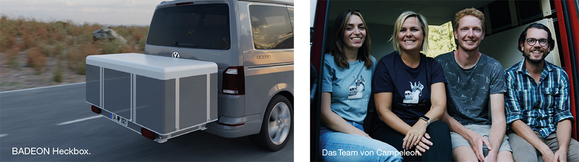 Eine weitere smarte Erfindung der kreativen Campeleon-Köpfe ist das BADEON Heckbad. Es kommt einfach auf die Anhängerkupplung – samt Dusche, Toilette und Waschbecken. So muss man auf das eigene Bad nicht verzichten und hat trotzdem maximalen Platz. Das Heckbad kann man bequem online bestellen und bei einer 2.000 € Anzahlung bis zu 2.000 € sparen.
