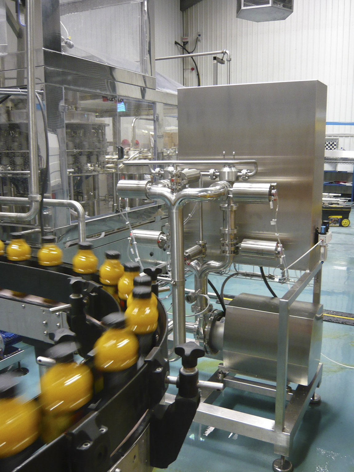 To prevent foaming, the liquid must be cooled down to around 2-4 degrees, using a lot of energy. However, this causes problems during labelling: Condensation forms on the cooled bottle and the labels do not stick. So energy has to be used again to dry the bottles. “But Cavitator simplifies all this,” he says.
