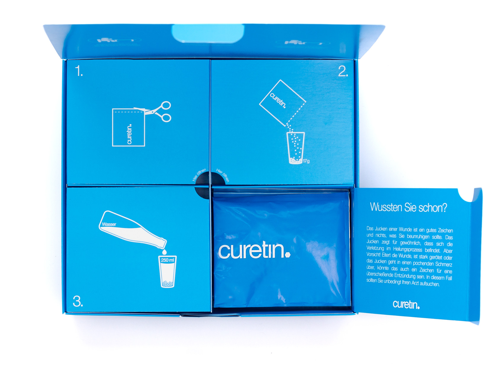The nutrient Supplement curetin has been developed to Support the Body during its recovery phase after injuries, operations or whilst dealing with chronic wounds. Giving our body that extra bit of help can make all the difference. Developed in the university Environment of the Technical University Munich, curetin contains carefully selected Micro and macronutrients to supply the Body with a comprehensive mix of nutrients to help repair its tissue after operations. “curetin contains exactly those nutrients that support and speed up the healing process,” explains Curetic’s director Simon Krämer “curetin is available in different boxes for various purposes,” he continues. “The three boxes each contain a mix of sachets with the right nutrients depending on the circumstances and the specific stage of recovery.”