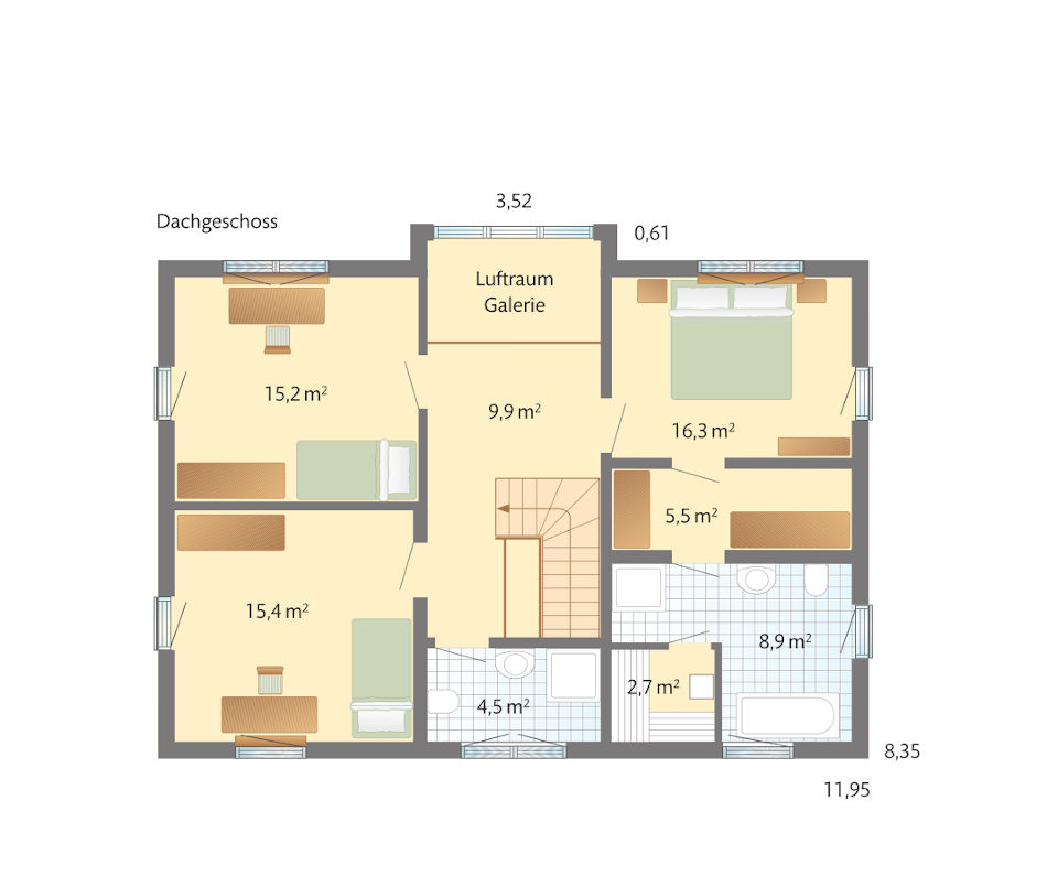 Interested families can experience the authentic Danhaus feeling in one of the company’s 14 stylish model homes all over Germany, from Cologne and Berlin to Munich in Bavaria. For example, the new Danhaus model ‘Kronshagen’ can be visited in the model home exhibition ‘FertighausWelt’ in Günzburg near Ulm. It keeps in line with current trends and comprises a high knee wall, a gallery and a cathedral ceiling in the attic. The well-structured floor plan guarantees spacious living on both levels. From the open staircase to the living area, the parents’ bedroom with dressing room and own bath with sauna: this Danhaus has exceptionally beautiful details. Furthermore, it is also equipped with the 1Liter-Haus! technology and thus, worries about increasing energy prices are not an issue for the building owner.