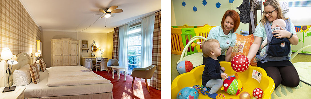Das Familotel im romantischen Landhausstil bietet 40 Zimmer, die alles bieten, was Familien mit Kindern benötigen, vom Gitterbettchen bis zur Wickelkommode. Auch Buggys und Kinderwägen sind vorhanden. Um Verpflegung müssen sich die Familien keine Gedanken machen: Das All-Inclusive-Programm beinhaltet nicht nur Frühstück, Mittag- und Abendessen, sondern auch ein Kuchenbuffet.