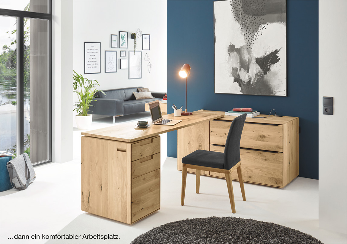 Dass Decker die Massivholzmöbel von ihrem schweren, barocken Designimage befreit hat, zeigt vor allem die neue Homeoffice Möbel Serie: Mit wenigen Handgriffen schafft sie an jedem Wunschort den notwendigen Arbeitsplatz – auch wenn gar kein Platz da ist. Das massive Holz setzt einen wohltuenden Gegenpol zu den digitalen Medien und kalten Oberflächen, die unseren Arbeitsalltag begleiten.