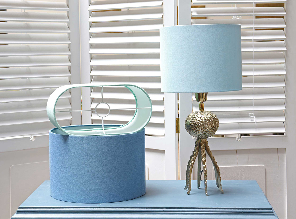 These handmade lamp shades come in six beautiful blue and green shades, and are offered in various sizes and shapes to fit your individual style and interior. £27 per shade.