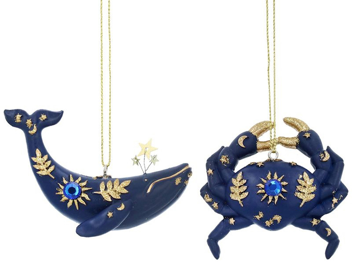 Add some stylish kitsch fun to your Christmas tree this winter with our celestial decorated resin whale or crab baubles. £9.