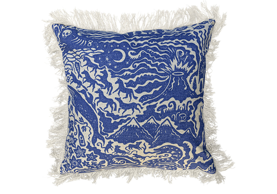 Created from an award winning fabric, these cushions are trimmed with fringing which is produced as a by-product of the weaving process and which would normally go to waste. The extra large plump cushions have a hidden zip and woven label, and everything from the fabric to the label has been made as sustainably as possible. £150.