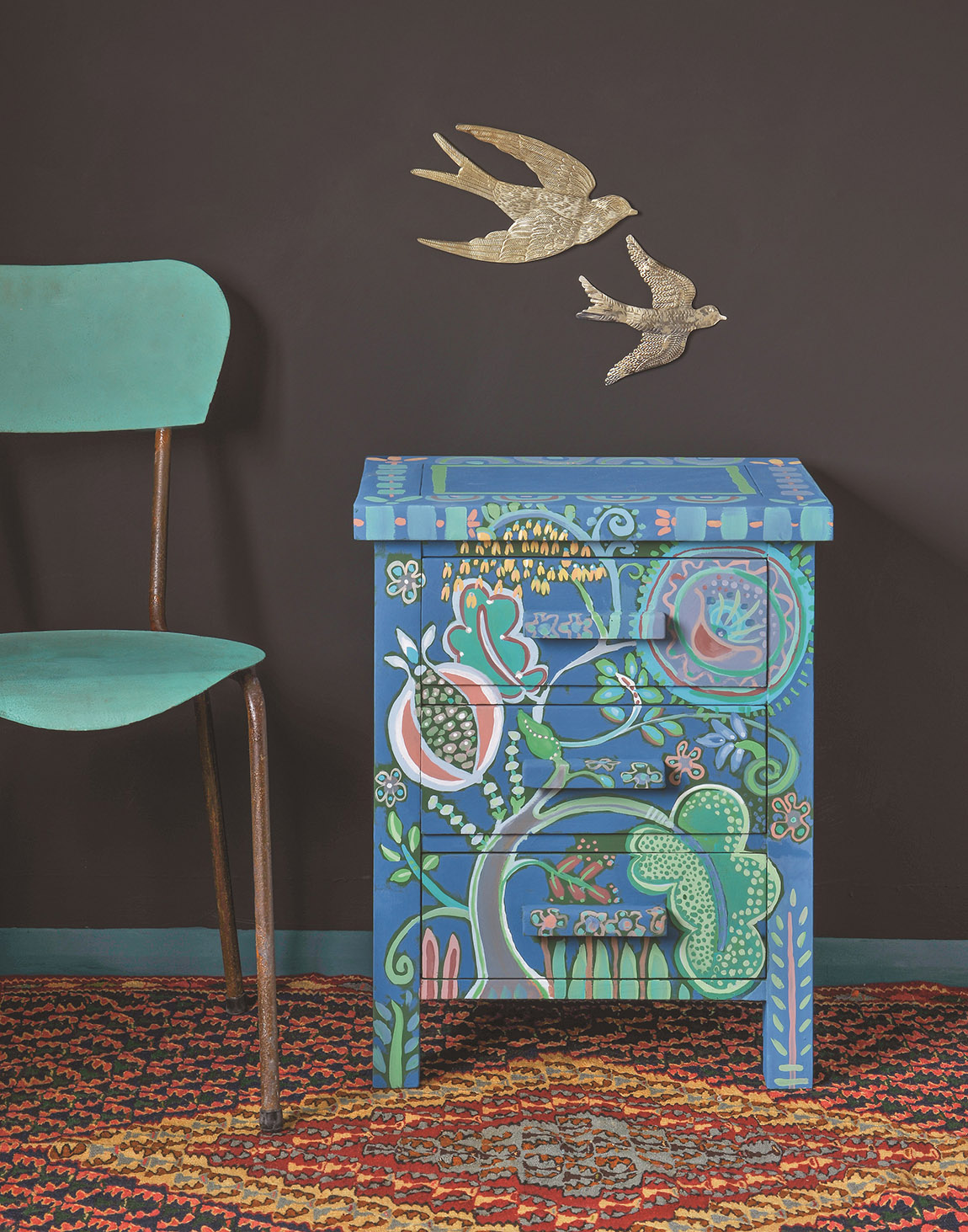 Make any room fun with this blue folk chest of drawers for which the detailed floral pattern was created using detail brushes. £PoA.