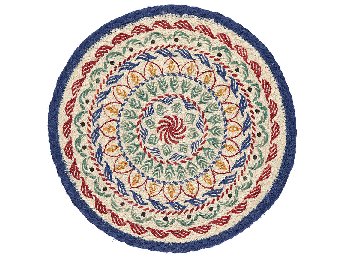 Colour up your dining table with this hand-printed placemat on organic jute. Comes in a set of six and can be purchased with a set of coasters in the same style. £49.