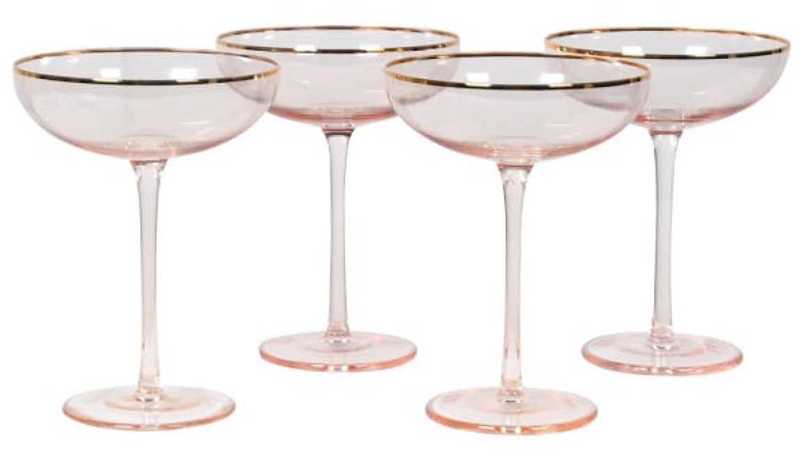 With classic wide bowls and long, slim stems, this set of four chic cocktail coupes is delicately decorated with an elegant gold banded rim, perfect for that special occasion.