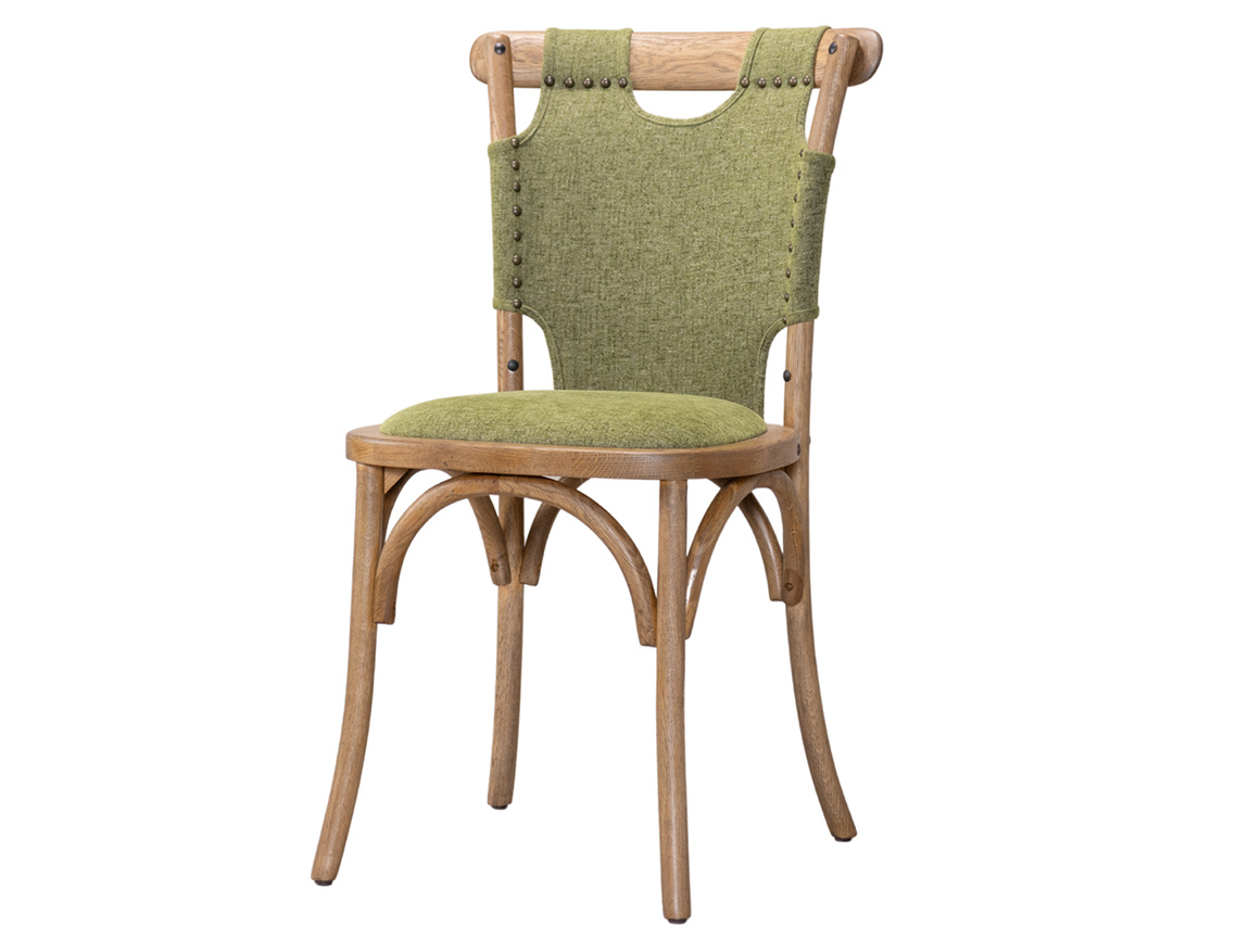 Ideal for modern farmhouse kitchens, dining rooms, restaurants and cafés, this dining chair features a cushioned seat for comfort and a statement upholstered back for added style. Crafted from solid wood, it combines durability with timeless beauty, making it a versatile choice for any setting. £120.
