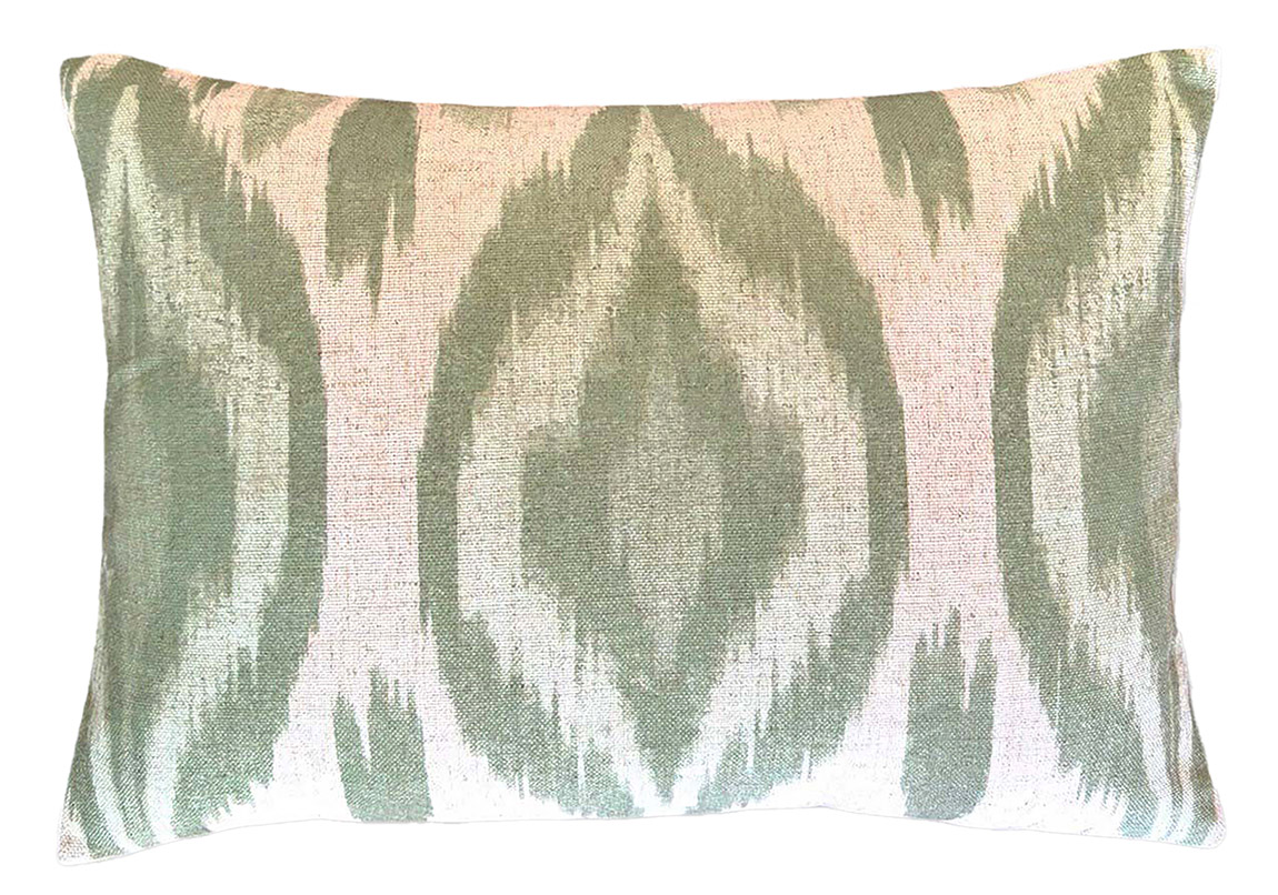 A green linen cushion with an ikat-inspired weave to bring a gentle dose of sage green colour and softly blended pattern to any room. Oblong in shape, this is a cushion that sits prettily in front of a bed’s pillows or with a larger square cushion on a sofa or armchair. £40.