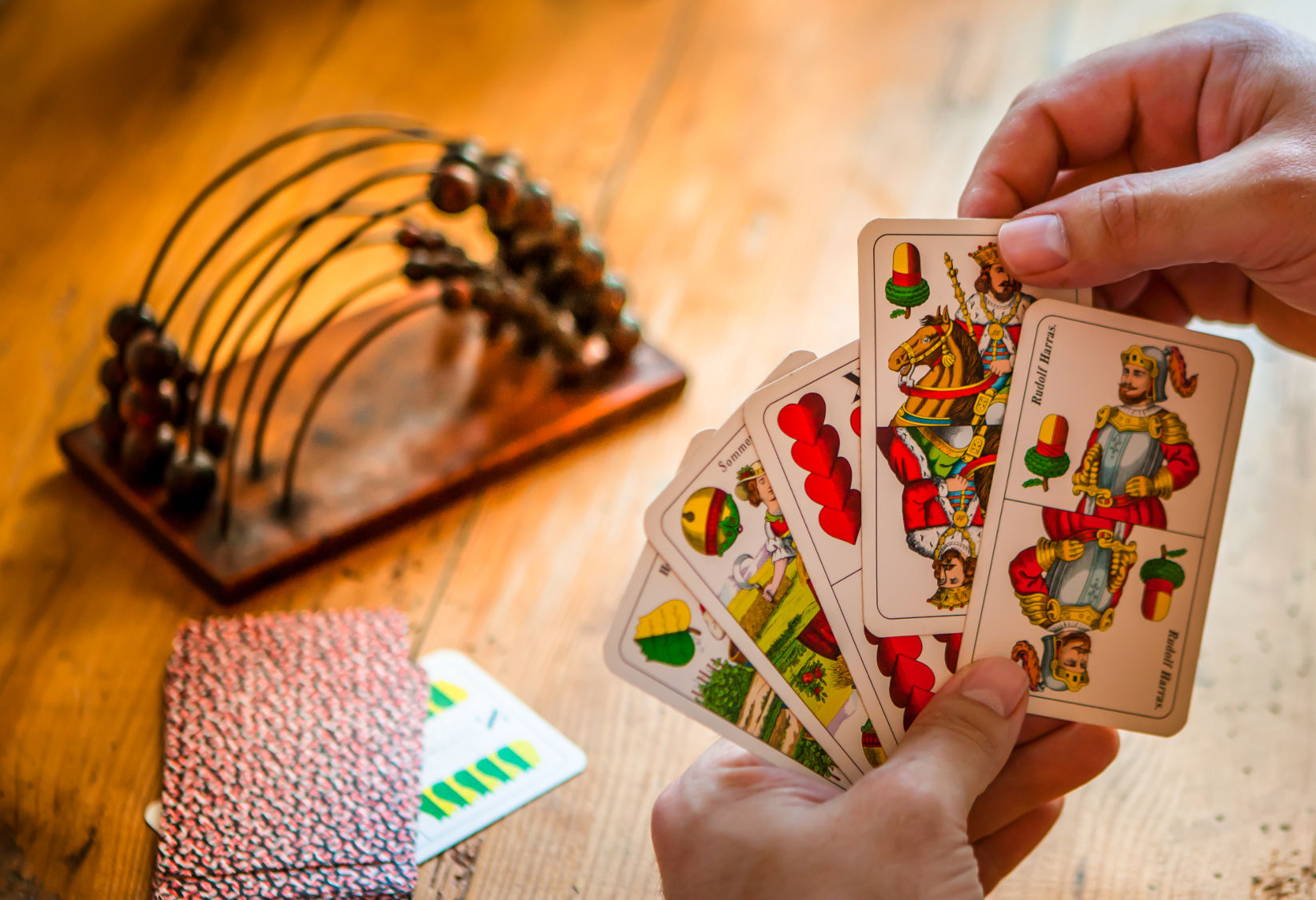 One could find them huddled over a table in an Austrian pub: Card game players spellbound by the Schnapsen cards stacked on the table. The traditional Austrian game, played for centuries, has never lost its appeal and now it has even become an online multi-player game available via Facebook and mobile app. Schnapsen is a rather fast two-person card game, enjoyed especially in the region of the former Austro-Hungarian monarchy. It is also played in Germany, with slightly different rules, where it is called Sixty-six, because players have to collect 66 point as fast as possible.