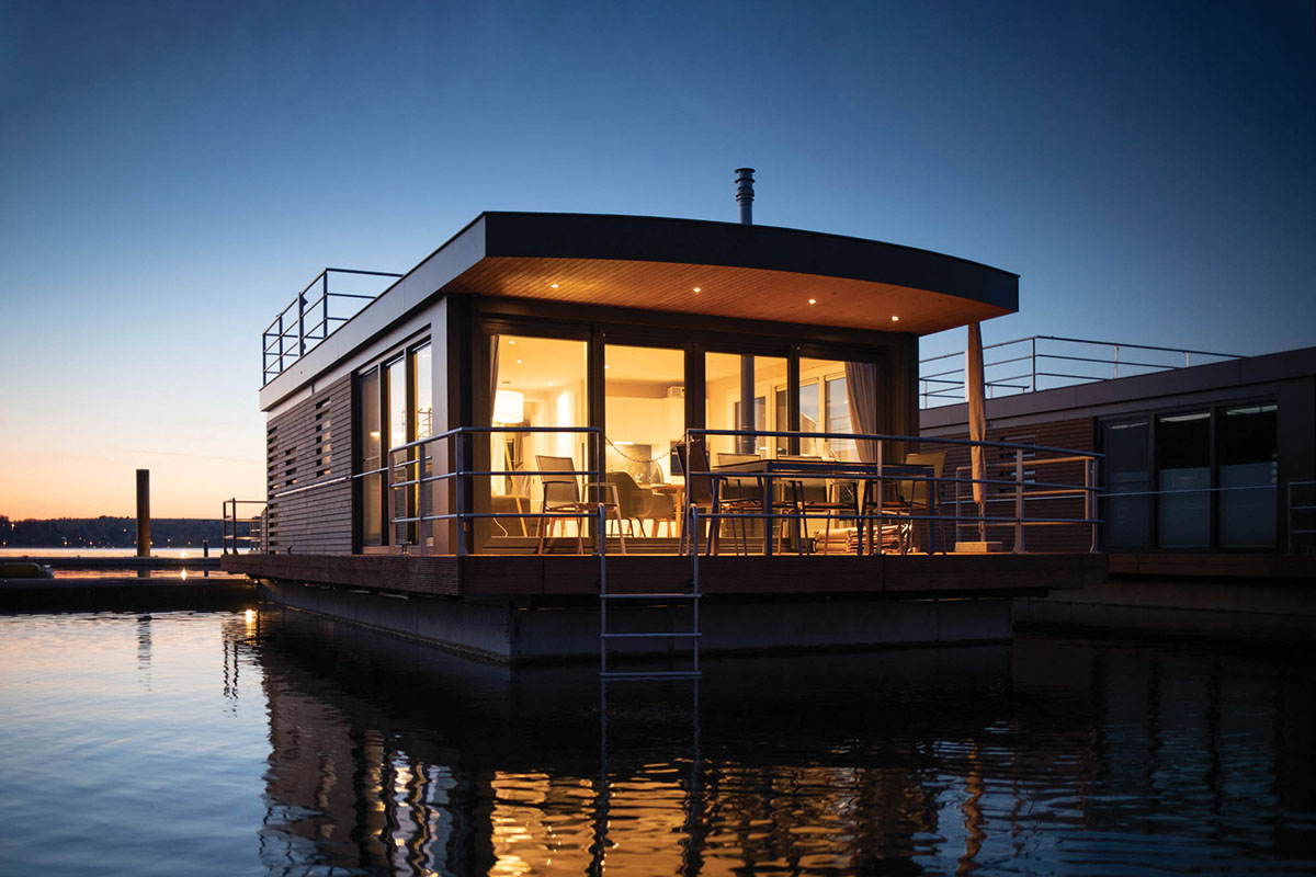 “It is a special experience that can be found nowhere else in Germany,” says managing director Ralf Tellmann. The Floating Village Brombachsee is Germany’s first four-star holiday park on the water, certified by the German tourism board DTV. The lodges are designed in four styles and have hotel character: using a digital concierge, guests can, for example, order drinks and breakfast that can be delivered to the house by boat. The shuttle service is by boat or golf cart.