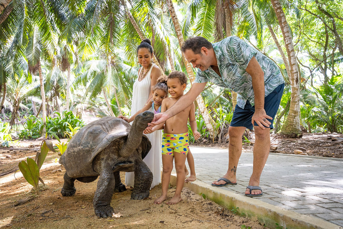 Für kleine Kinder sind Ausflüge mit einem Glasbodenboot oder Halb-U-Boot-Touren im Sainte Anne Marine Park ideal. Der Park eignet sich perfekt zum Schnorcheln und wird oft von Karettschildkröten und Großen Tümmlern besucht. Keine Reise auf die Seychellen ist vollständig, ohne die berühmten Aldabra-Riesenschildkröten gesehen zu haben. Diese sanften Riesen sind an verschiedenen Orten zu finden, darunter im Botanischen Garten auf Mahé, im L’Union Estate auf La Digue und auf der Insel Curieuse. Neben abenteuerlichen Aktivitäten können Familien Kochkurse besuchen, um die kreolische Küche zu lernen, Picknicks an atemberaubenden Stränden machen, Kokosnuss-Strohhüte herstellen oder an Textil-Workshops teilnehmen.