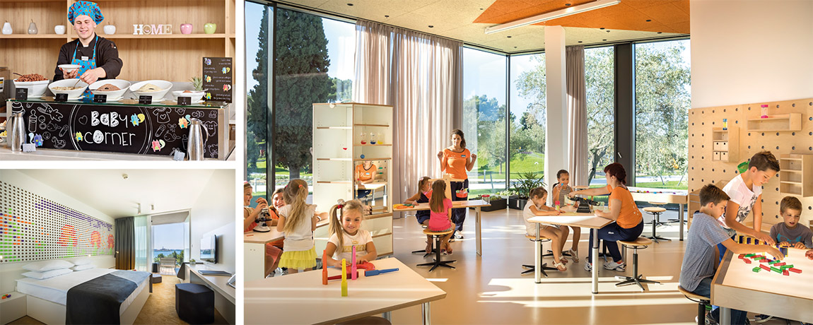 The restaurants also cater especially to families with children: the hotel has excellent food available via a buffet, with a healthy selection of food, where parents of babies and small children can get fresh meals for breakfast, lunch and dinner. Close to the hotel are two additional restaurants: the Istrien Beach House, for example, is an a la carte restaurant with a stunning seaside location and some excellent Mediterranean dishes on offer. The second option, the Marsea Restaurant, is an ideal location for a light lunchtime snack or a refreshing cocktail in the shade of pine trees with a view that looks towards Rovinj’s old town centre. Additionally, there is the Pool & Chill snack bar, located directly next to the pool.