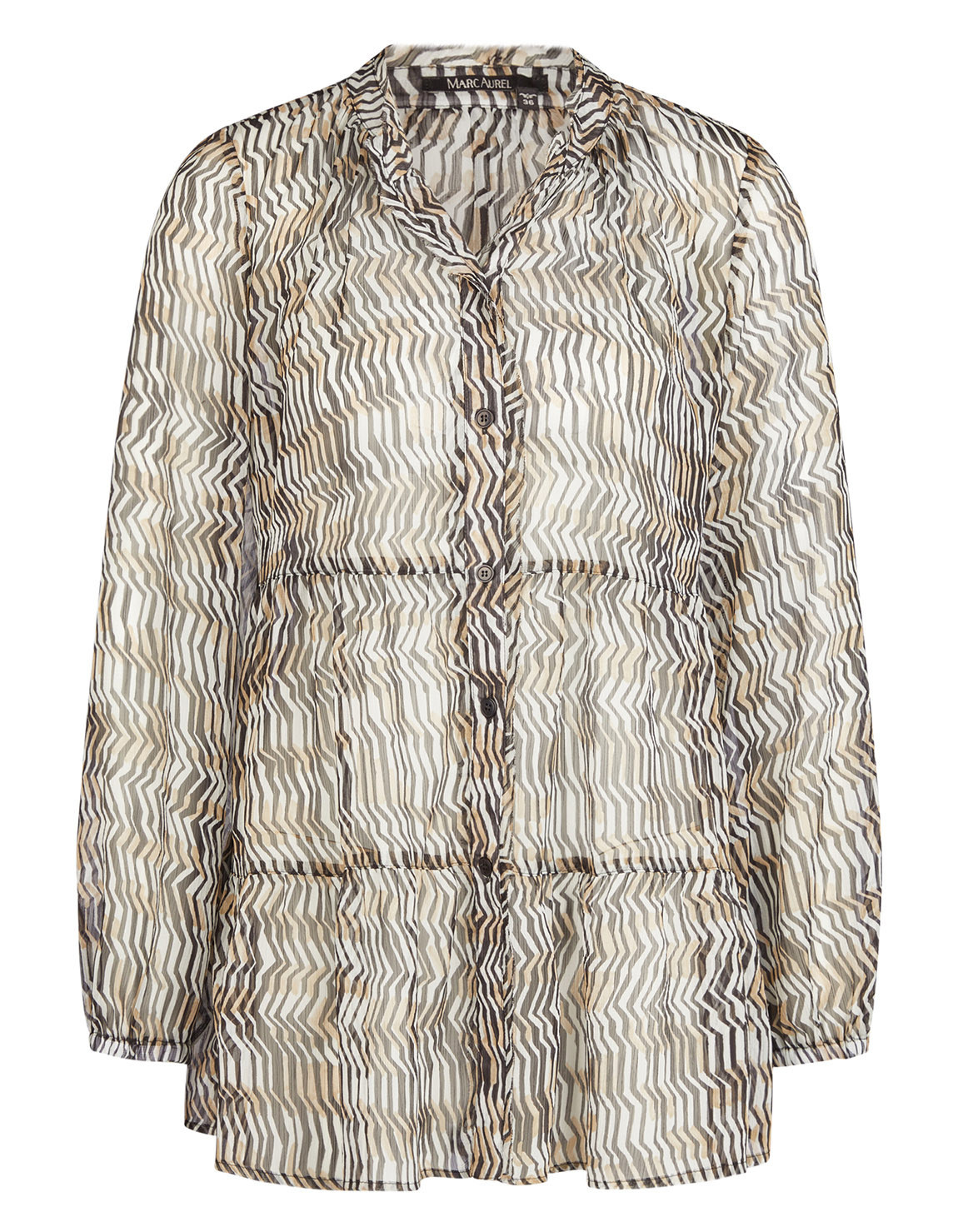 Fashion with a clear conscience, that’s what this chiffon blouse made of recycled polyester stands for. The trendy minimal ethnic print, the collar with ruffled edge and the dividing seams with ruffles create a trendy boho look. £136.