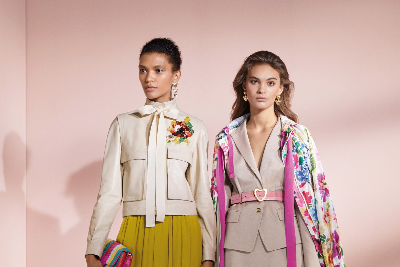 Two more fun, yet elegant looks by Escada. Both show how easy it is to combine beige and crème nuances with vibrant colours to create fascinating outfits. £POA.