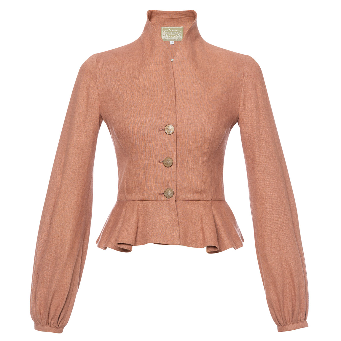 This jacket is a sophisticated combination of tradition and modern elegance. Made from high-quality linen, this jacket lends any outfit an airy lightness. A stand-up collar gives the jacket a classic touch, while the peplum adds a feminine touch. £400.