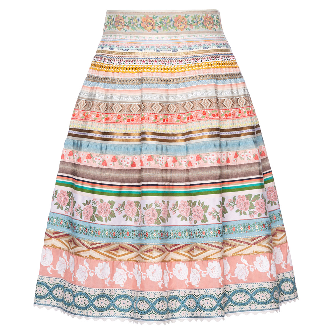 The classic ribbon skirt – here in the stylish ‘berries & cream’ colour – combines timeless elegance with playful romance. Delicate floral ribbons in pastel colours adorn the skirt, which features a side zip and wide waistband. An expression of style and sophistication, this classic ribbon skirt makes a fashion statement and underlines individual elegance. £492.