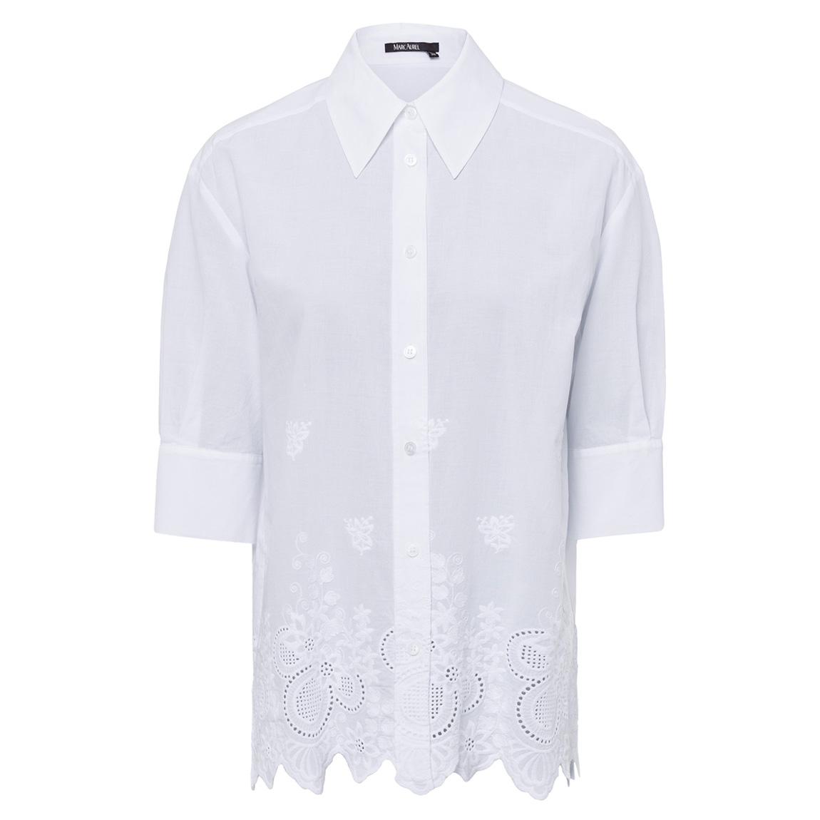 This shirt blouse made of high-quality embroidered cotton combines elegance and comfort. The soft feel of the material and the casual shape ensure a comfortable fit, while the classic slit cuffs and shoul der yokes add stylish details. £128.