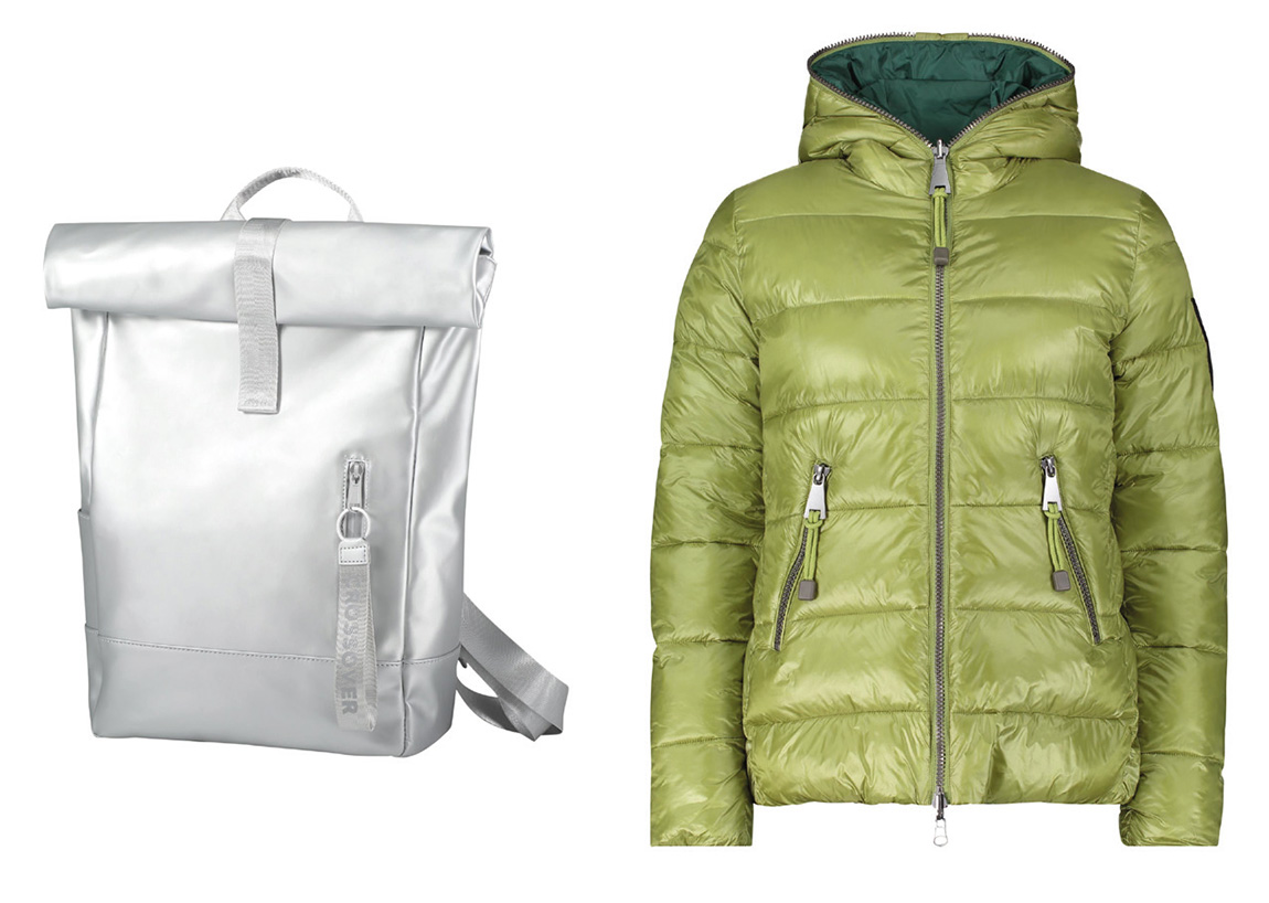 This reversible jacket is an absolute trend piece. The down-look outdoor jacket is quilted on the outside and has a material mix with non-quilted shape memory on the inside. All outer fabrics and lining as well as the cotton filling are made from recycled material and are therefore sustainable. £188.