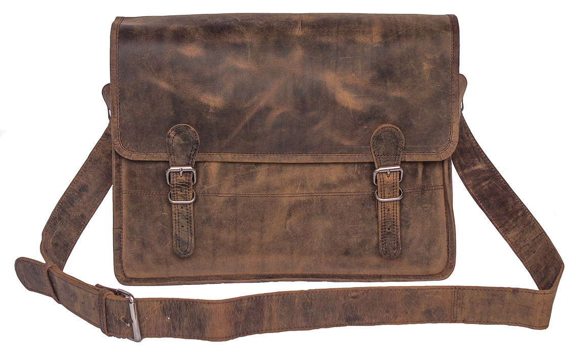 This large retro satchel bag is a stylish, sturdy, multi-purpose leather bag with a perfectly aged leather exterior, inspired by the classic iconic old brown leather school satchel. It is a versatile spacious bag for day-to-day stuff and everything you need to take to work. £117,50.
