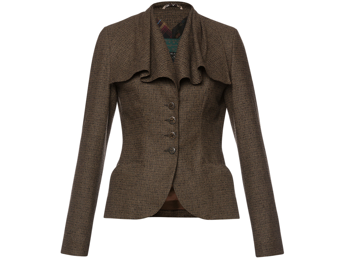 The ‘Graham’ houndstooth jacket comes with a draped collar and is made from wool. Combine with a skirt or some trousers for an elegant and sophisticated outfit. £632.