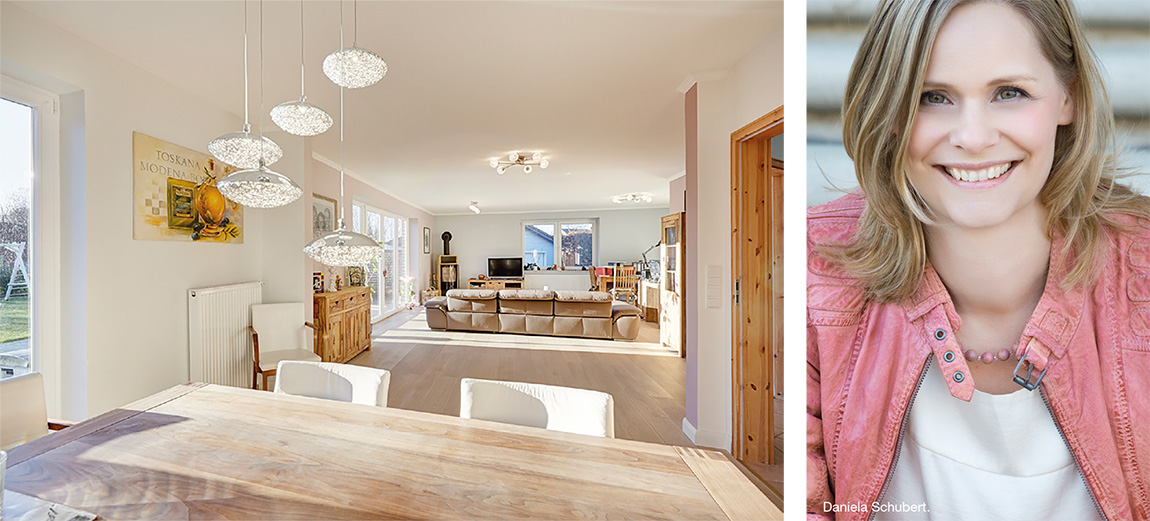 Feng Shui verfügt über die Möglichkeiten, Probleme aufzudecken, Blockaden zu lösen und die Lebensenergie wieder in den Fluss zu bringen. Doch wie werden aus Zimmern Wohlfühlräume? „Wie bei den Außenanlagen auch ist das Gestaltungspotential bei den Innenräumen enorm. Idealerweise werden die Zimmer, die Inneneinrichtung, ja sogar die Wegeführung innerhalb des Objekts so gestaltet, dass eine größtmögliche Ausgewogenheit zwischen den Räumen und den darin lebenden oder arbeitenden Menschen entsteht“, erklärt Daniela Schubert. Und tatsächlich beginnt Feng Shui bereits beim Grundriss eines Objekts: „Das Haus oder die Wohnung sollten eine ausgewogene Form haben – wie ein Quadrat oder ein Rechteck geformt sein, also regelmäßig.“ Bei unregelmäßigen Formen, bspw. bei einem Winkelbungalow, fehlen dem Baukörper bestimmte Himmelsrichtungen und damit die Resonanz in verschiedenen Lebensthemen wie Gesundheit, Geld verdienen, Wissensentwicklung, Partnerschaft und vielem mehr. Aber auch in solchen Fällen lassen sich in einer Feng Shui Beratung ausgleichende Gestaltungsmaßnahmen erarbeiten.