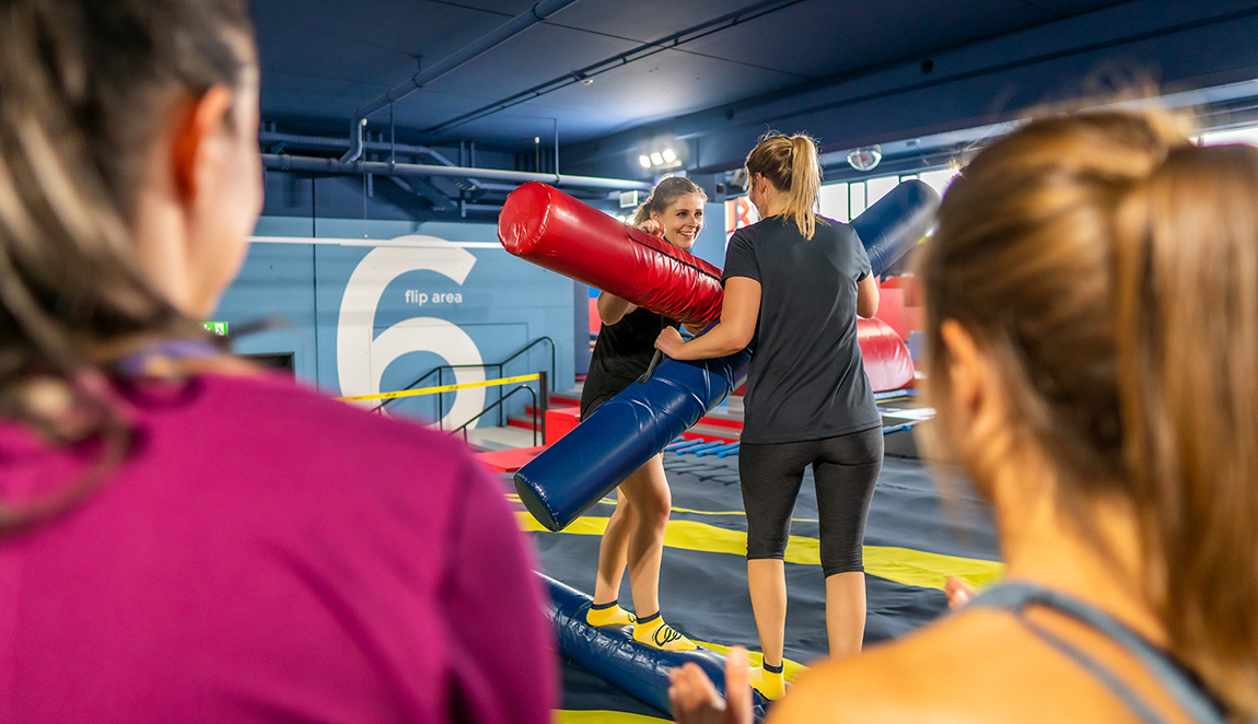 Damit alle sicher Spaß haben, beginnt jede Party mit einem fünfminütigen Warm-up, bei dem geschulte Instruktor:innen die wichtigsten Regeln erklären. „Die Eltern können sich ganz entspannt zurücklehnen“, betont Natterer. „Unser Sicherheitskonzept ist durchdacht und unser Team ist immer vor Ort, um die Kinder zu unterstützen. Außerdem werden alle Anlagen täglich kontrolliert, um sicherzustellen, dass wirklich alles in Ordnung ist.”