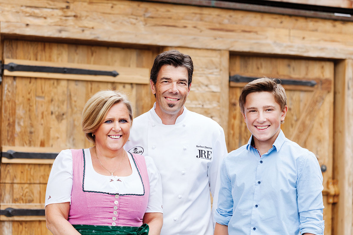 Tagsüber ist das Gasthaus Höhwald ein beliebtes Ausflugsziel, immerhin ist es von Klosters aus in gerade einmal 45 Gehminuten zu erreichen. Das Highlight aber sind die Abendstunden, wenn das Küchenteam aus regionalen Produkten ausgezeichnete Gerichte zaubert. Traditionelle, einheimische Küche in moderner Interpretation trifft dabei auf Einflüsse aus den Nachbarländern Österreich und Italien: Zürcher Geschnetzeltes mit goldbrauner Kartoffelrösti, Spätzliteig mit Gemüse in Mangold gewickelt und in Rindersuppe gekocht oder Wiener Schnitzel vom Kalb. „Zum Nachtisch bieten wir zum Beispiel Kaiserschmarrn mit Zwetschgenröster – in der Schweiz ‚Tatsch’ genannt“, sagt Gastgeberin Silvia Dietrich, die das Gasthaus gemeinsam mit ihrem Mann Heribert leitet.