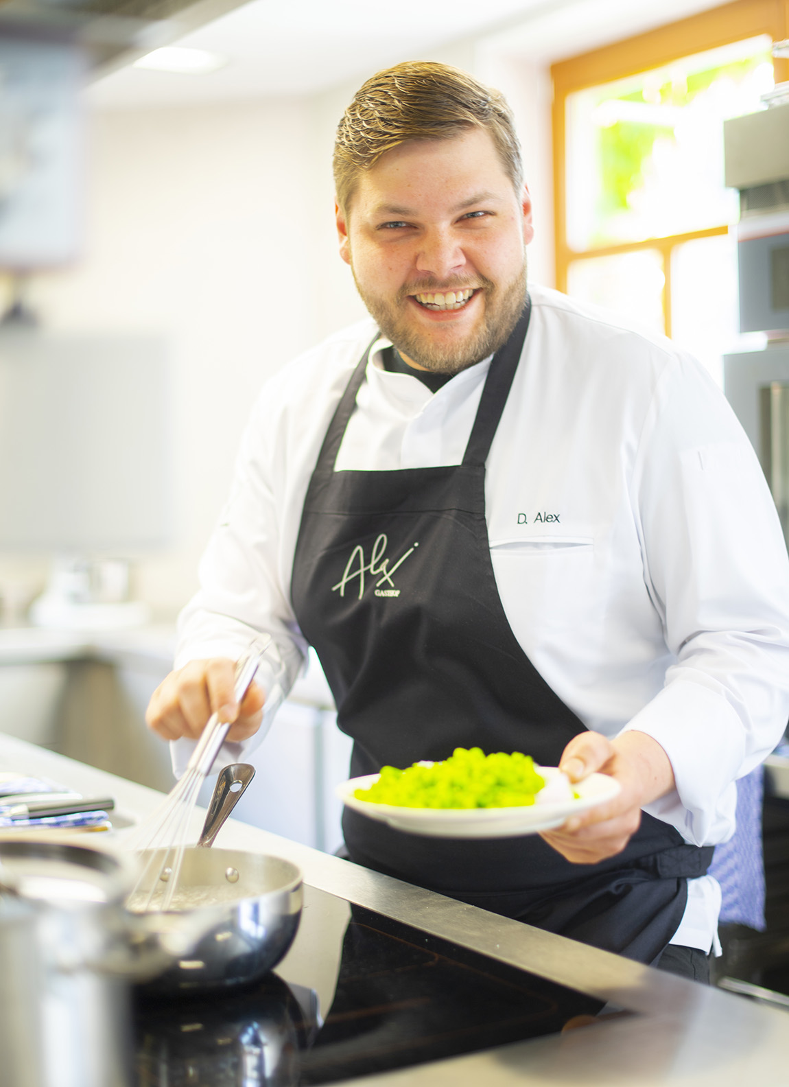 Im familieneigenen Gasthof im oberfränkischen Gössersdorf hat sich Domenik Alex mit seinem Team in den Sternenhimmel gekocht. Er verwöhnt Feinschmecker mit einer innovativen Küche, die traditionelle, fränkische Familienrezepte raffiniert neu interpretiert.