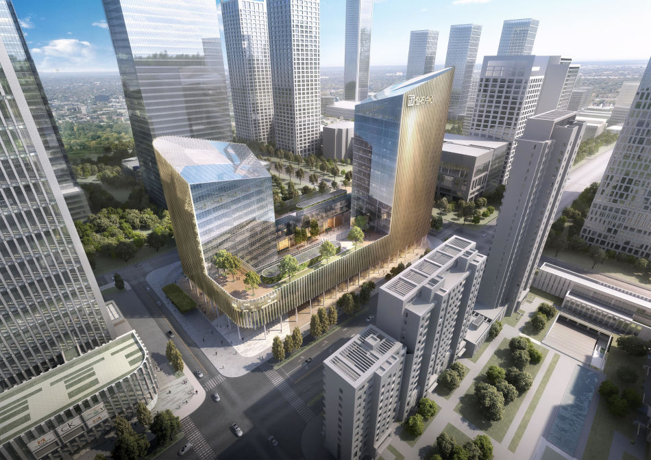 Die wirtschaftlich starke Entwicklung führt auch in China zu einer fortschreitenden Urbanisierung der Städte, so auch in der Stadt Jinan. In enger Abstimmung mit der staatlichen Kommission und unter Einbeziehung der festgeschriebenen Gestaltungsrichtlinien des Stadtentwicklungskonzepts Jinans soll im Central Business District (CBD) ein neuer Bürokomplex entstehen. Das Gebäudeensemble besteht aus zwei unterschiedlich hohen und versetzt zueinanderstehenden Bürotürmen, die über zwei verbindende Riegel und einen begrünten Innenhof miteinander verbunden sind. Durch die auf dem Grundstück versetzte Position und aufgeständerte Bauweise ist ein ‚Durchfließen‘ im öffentlichen Stadtraum möglich. (Wettbewerb 2018)